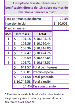 Bonificación directa del 1% sobre montos de inversión por tiempo limitado:
