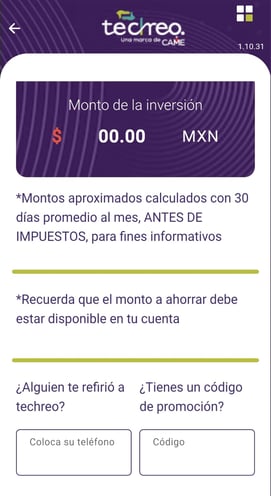 Selecciona que alguien te refirió he ingresa el número telefónico (para que te sea reembolsado el 1% de la inversión, aplica para inversiones de 6 meses en adelante)
